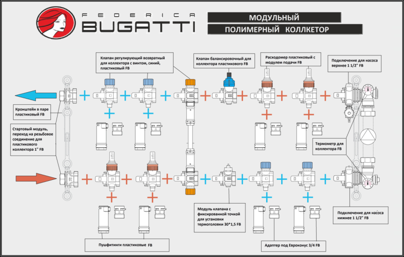 Коллектор модульный в сборе пластиковый Federica Bugatti с 3 выходами